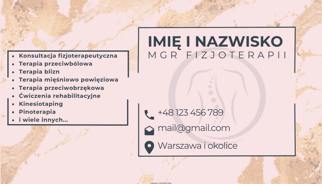 Wizytówkę zaprojektowałem z myślą o prostocie i elegancji. Czytelny układ informacji, wysokiej jakości materiały oraz estetyczny wygląd sprawiają, że wizytówka wyróżnia się na tle konkurencji. Moim celem było stworzenie narzędzia, które będzie skutecznie reprezentować fizjoterapeutkę i zachęci potencjalnych pacjentów do nawiązania kontaktu.